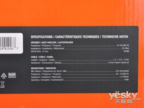 包装中标注这款产品的基本参数,主要是其发音单元和麦克风内容。