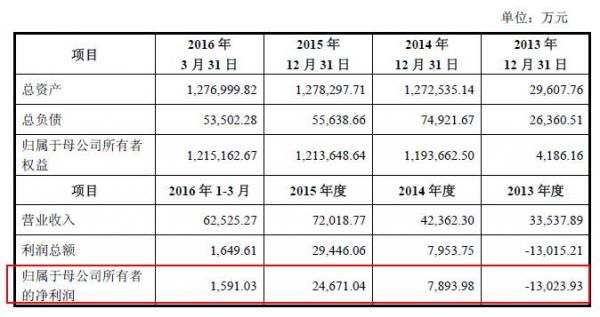 据最新三季报显示,公司实现营收15.38亿元,同比增238.16%;实现净利润2.15亿元,同比增78.27%。公司2013年、2014年和2015年,分别实现归属母公司净利润为:-13,023.93万元、7,893.98万元和24,671.04万元。