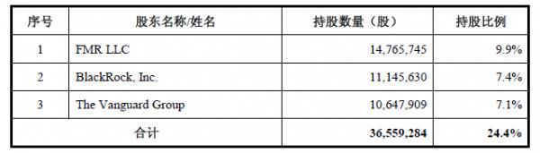公司主要股东为富达基金(FMR LLC)、贝莱德(BlackRock, Inc.)、先锋集团(The Vanguard Group),三家机构对于投资管理领域有着独特的管理经验。