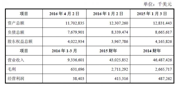 公司2014财年、2015财年及2016财年一季度,分别实现净利润为:2.6亿美元、2.15亿美元和189万美元。