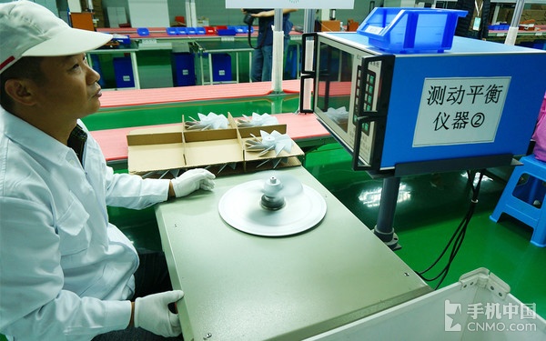 为了让空气净化器在运行时的噪音更小,每个扇叶都要经过动平衡测试。