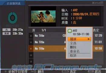 通过设定预约录制的频道,开始时间以及总时长,便可以在无人的状态下自动录制,即便处于关机(待机)状态下也可以自动开始录制,当然不能关闭总电源。