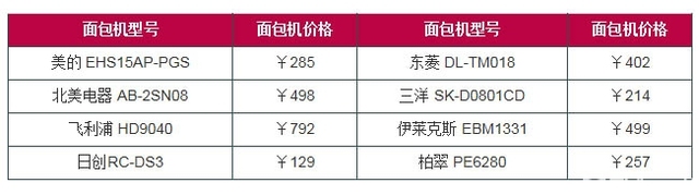 面包机价格表
