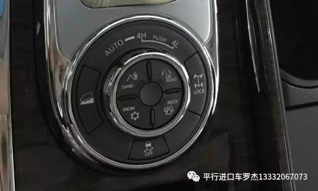 越野和行驶控制部分,XE车型与高配相比没有任何缩水,中差后差两把锁,动态稳定系统开关、下坡辅助开关、后差速锁锁定、以及沙地、公路、雪地、岩石道路地形模式都排布在挡位之后的圆形控制区内。