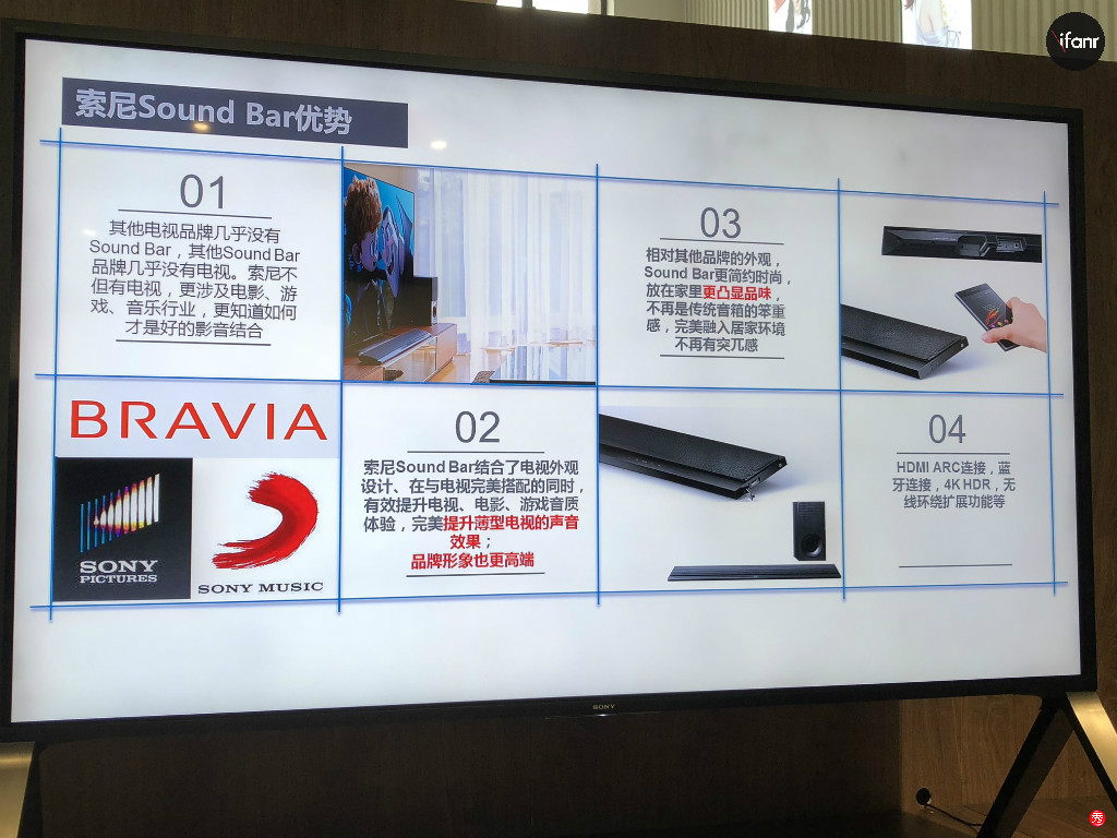 对于索尼回音壁 Sound Bar 的优势,杨勇在 Keynote 上列出了四点: