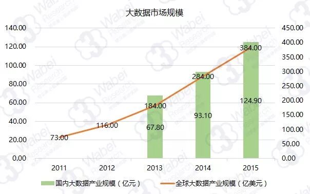 再来看看大数据产业的“蛋糕”有多大。根据IDC(国际数据公司, International Data Corporation)的预测,到2018年,全球大数据技术和服务市场的复合年增长率将达到26.4%,规模达到415亿美元,会是整个IT市场增幅的6倍左右。同时,大数据在国内的市场规模异样巨大,根据中国信息通讯研讨院发布的《大数据白皮书(2016)》数据显示,2015年我国大数据核心产业的市场规模达到了115.9亿元,增速达38.0%。同时估计了大数据核心产业在2017-2018年还将维持40%左右的高速增长。可以这么说,不论是国内市场还是国际市场,大数据市场的潜力很大,还有待发掘。