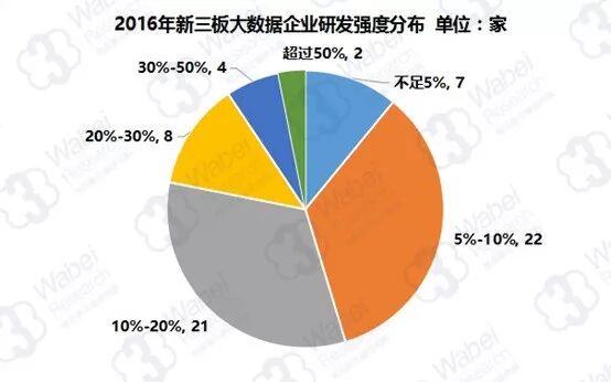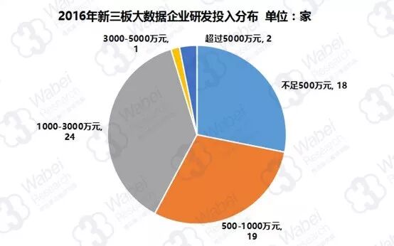 作为新兴概念行业,大数据也是一个前期研发投入较高的行业。数据显示,2016年新三板大数据行业全体研发投入8.06亿元,平均每家企业研发投入1259万元。其中,研发投入超过行业平均值的企业有23家,占比35.9%。而研发投入最多的企业是凯立德,2016年研发投入1.15亿元。