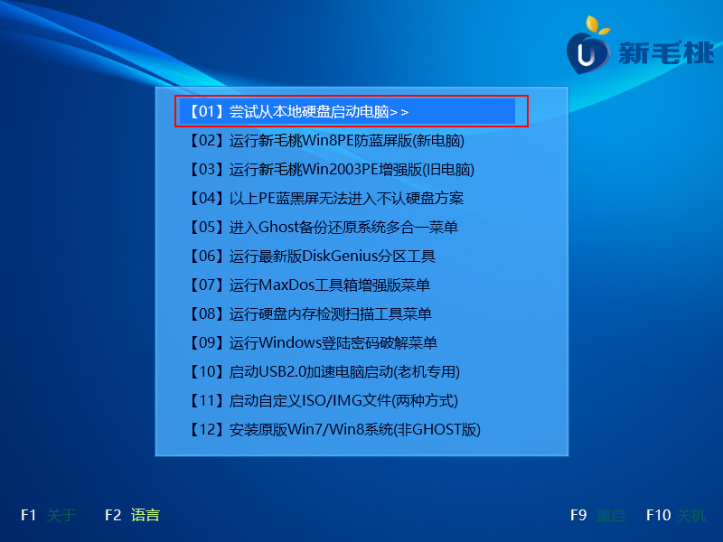 1、将老毛桃u盘启动盘插入机器USB接口(若是台式机,插到机箱USB后置接口效果更佳),重启电脑,出现开机画面后连续按快捷键进入老毛桃主菜单页面,在菜单列出的多个选项中选择“【02】运行老毛桃Win8PE防蓝屏版(新电脑)”,按回车键确认,如下图所示: