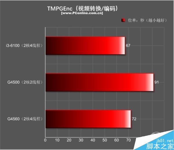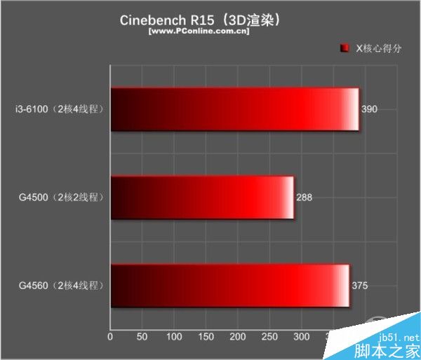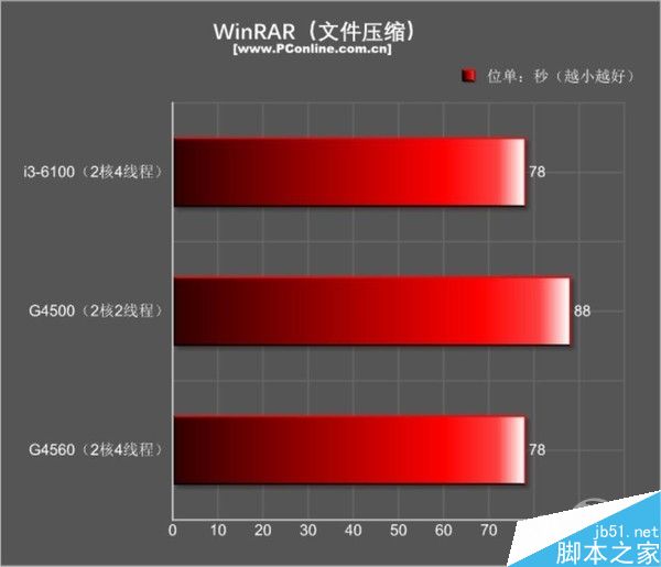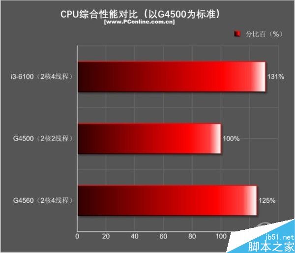 测试小结:除了在单核性能上G4560和G4500的成绩非常接近之外,其他的多线程跑分都慈领先含而且物理跑分的检测场景下,?5GHz的G4560和3.7GHz的i3-6100非常接近,CPU性能?%啄差距。