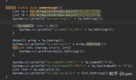 la.addAll(1,lb):[A, B, C, D, B, C]