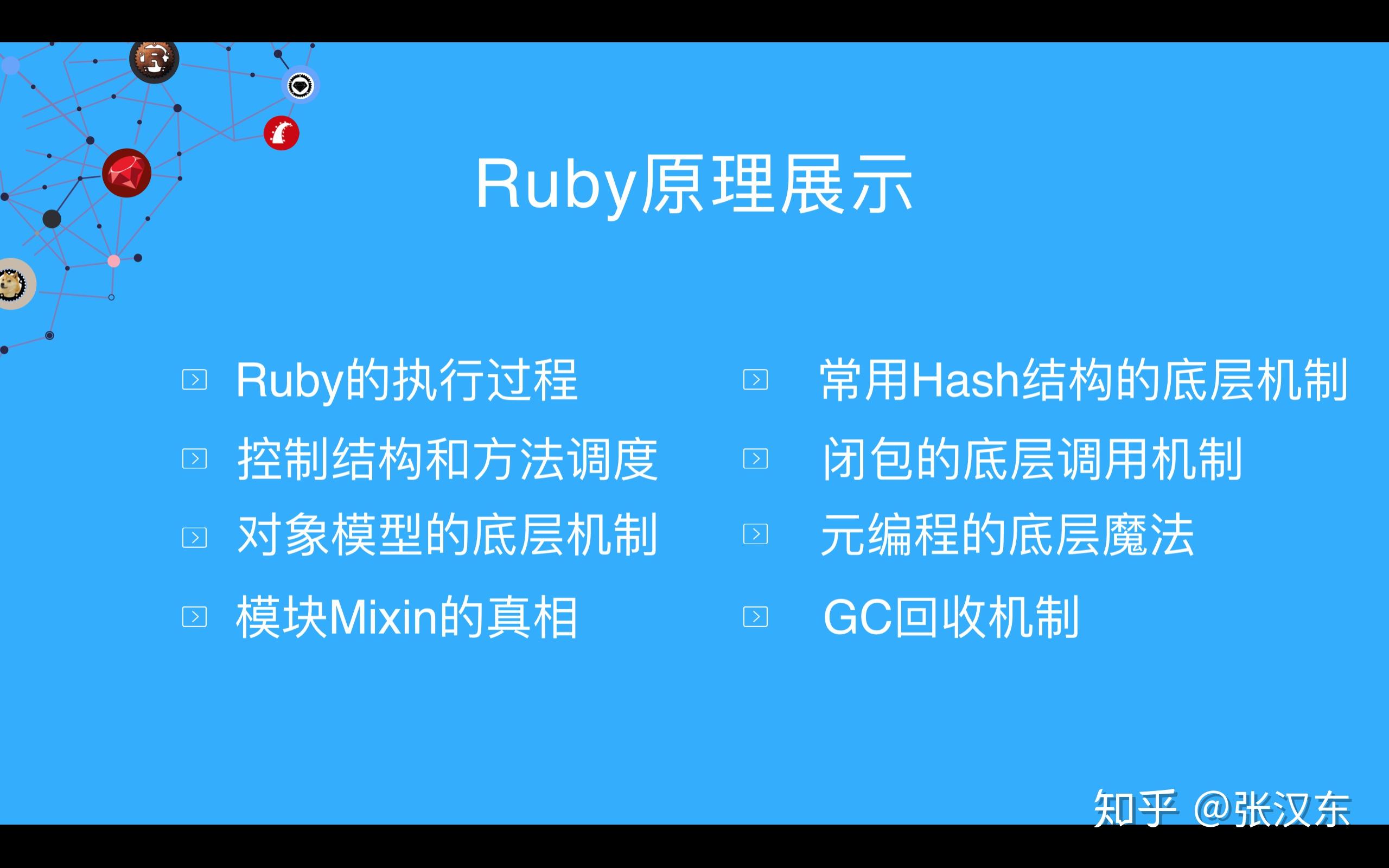 特别是,“ Ruby原理分析”一书的内容组织非常注重此级别的Ruby原理知识. 从Ruby的执行过程到Ruby的对象模型和方法查找,再到模块系统,Mixin的机制,闭包,元编程和GC. 这些内容实际上是Ruby的核心知识.