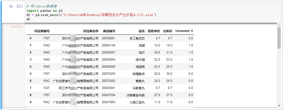 #导入Excel数据源以pddf = pd.read_excel导入熊猫(r“ C: \ Users \ QDM \ Desktop \华南综合水产品仓库价格4.1(1).xlsx”)df导入matplotlib.pyplot as plt #显示中文plt.rcParams [......