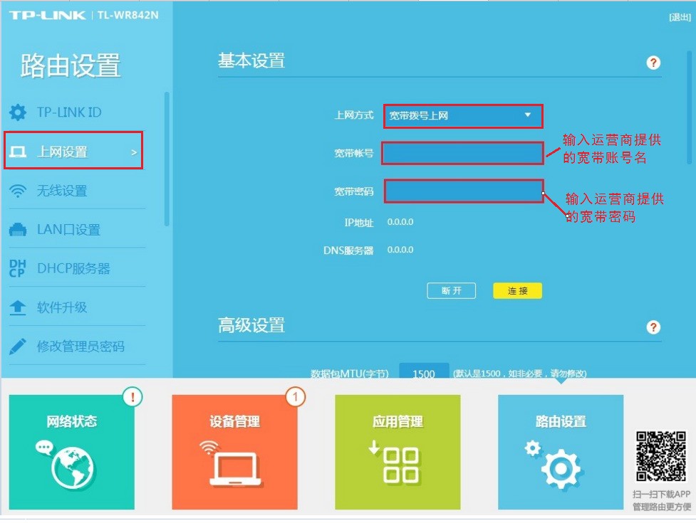 4. 您需要输入运营商提供的宽带帐户和密码,如下图所示.