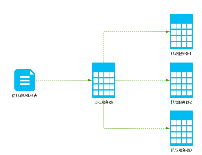在对等分布式搜寻器中,服务器之间的分工没有区别. 每个服务器都承担相同的功能,并且承担URL爬网工作的一部分.