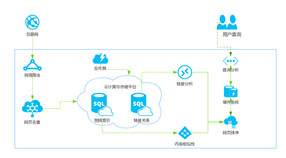 搜索引擎的技术架构很复杂. 为了存储大量数据,谷歌开发了一套云存储和云计算平台,例如著名的GFS和Map / Reduce.