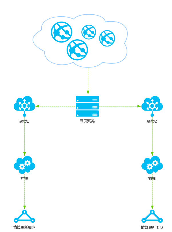 首先,根据网页的特征将网页分为不同的类别. 每个类别中的网页都有相似的更新周期. 从类别中选择代表性网页,并计算这些网页的更新周期,然后此更新周期将应用于类别中的所有网页.