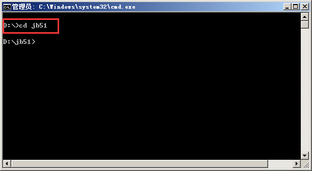 进入驱动器D的根目录后,键入cd jb51;在光标处,然后按Enter键进入目标文件夹