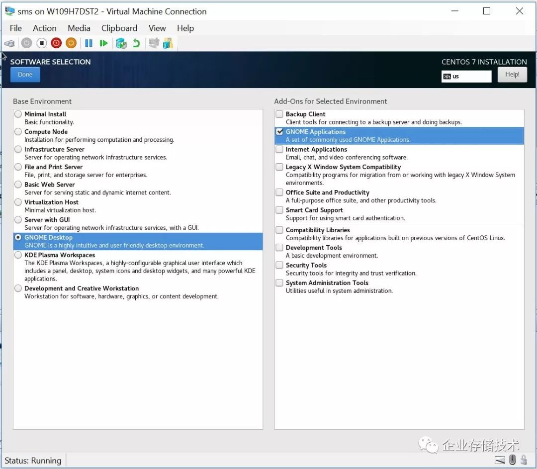 在软件选择中,安装最小软件包,该软件包具有Gnome Application图形界面.