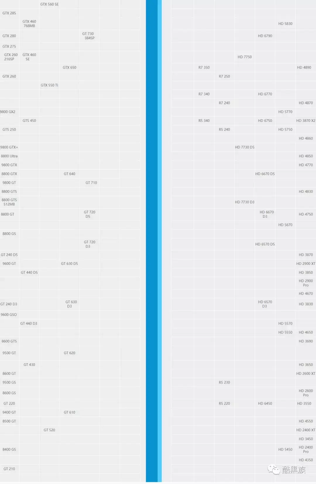 上面是最新图形卡的梯形图,请参见特定的URL: mydrivers.com/zhuanti/tianti/gpu /