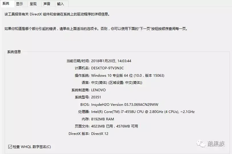 然后查看内存. 内存至少需要6G. 我们按win + r,然后输入dxdiag,然后按Enter,您可以看到计算机的配置参数.