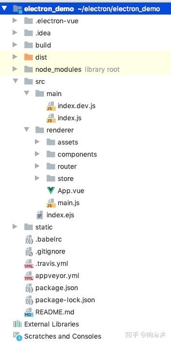 renderer是渲染过程目录,通常是项目开发源代码的存储目录,包括资产,组件,路由器,商店,App.vue和main.js. -assets: 资产(js,css)下的文件将合并到dist文件夹下项目目录中的文件中. -components: 此文件用于存储应用程序开发组件,这些组件可以是自定义组件. -router: 如果您知道vue-router,则以与vue-router类似的方式使用Electron项目的路由. -modules: electron-vue使用vuex的模块结构来创建多个数据存储,并将它们保存在src / renderer / store / modules中.