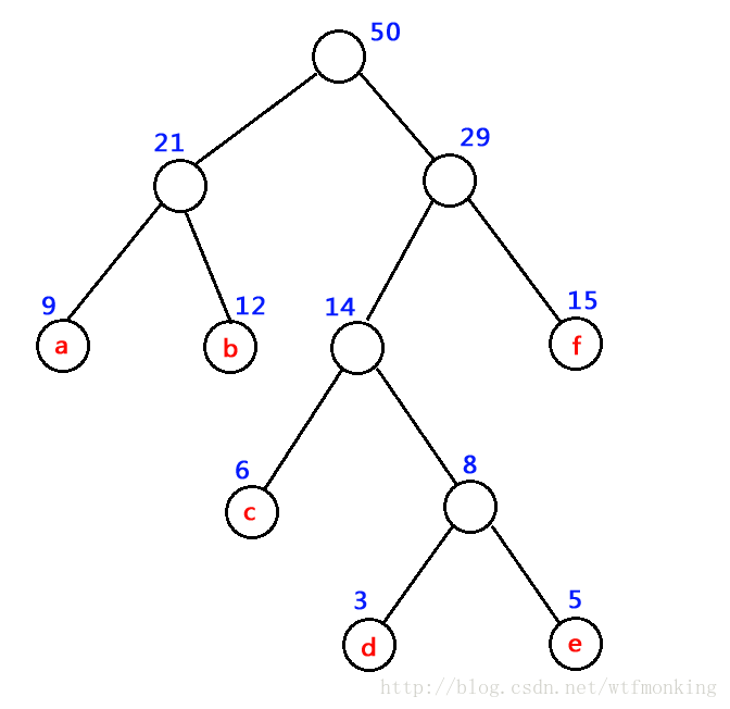 其中,n表示叶子结点的数目,wi 和 li 分别表示叶子结点 ki 的权和树根结点到 ki 之间的路径长度。