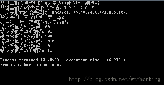 printf("从键盘输入待构造的哈夫曼树中带权叶子结点数n:");