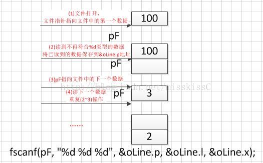 fscanf(pF, "%d,%d,%d", &oLine.p, &oLine.l, &oLine.x);以上提到的逗号甚至可以换成’a’这样的字符,但不可以为字符串(Debian Linux 下验证)。fscanf 字符