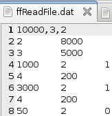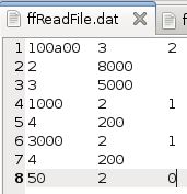 当不符合“特定式”所要求的数据且不为空和tab时,fscanf()将匹配到符合“特定式”的数据赋给地址后不再往下读。如现将ffReadFile.dat中的内容修改如下:
