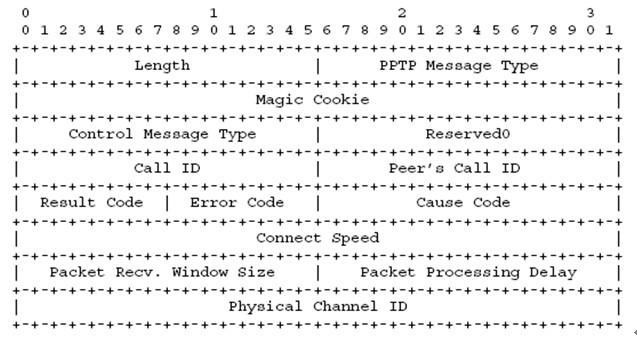 Length、PPTP Message、Magic cookie与Start-control-connection-request一致。不同的字段含义如下: