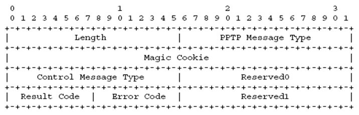 Length、PPTP Message、Magic cookie与Start-control-connection-request一致。不同的字段含义如下: