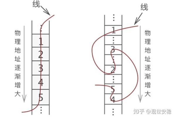 顺序存储在左侧,链式存储在右侧