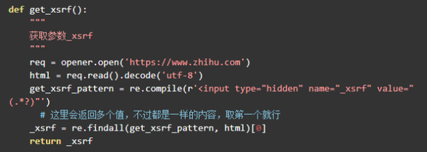 此参数会动态更改,因此一旦无法获取,它将一劳永逸. 从html正文中搜索_xsrf,然后使用正则表达式进行匹配.