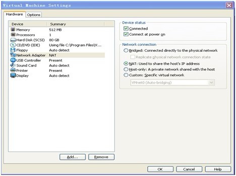 注意,网桥模式,在网络中和主机的网络有等同的地位,也就是说,虚拟出一个在网络中单独的PC , 虚拟机中的网络对于外界和主机的透明度是等同的。假若你的主机需要认证上网,那么虚拟机也需要认证上网。而Net 模式, PC充当一个网关的作用,虚拟机中的网络对于外界来说是不可见,也监视不到,但速度上网速度会有影响。