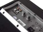 音箱的接口和调控在低音炮的右侧,最上方为音频输入接口,下方则是副箱输出接口,均为最常见的RCA接口,可以很方便地连接常见的因缘。下方则是音量调节、低音调节、指示灯和电源开关,所有功能一目了然,使用方便。