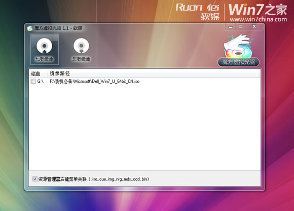 微软官方提供的光盘镜像是ISO格式,大家可以通过软媒魔方中的软媒虚拟光驱直接加载,直接通过这种硬盘方式安装集成SP1版的Windows7 系统。