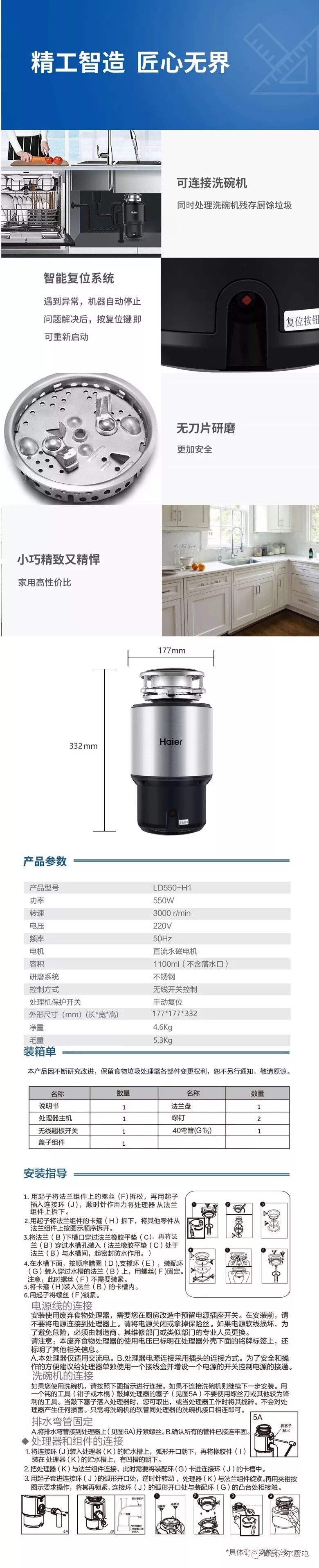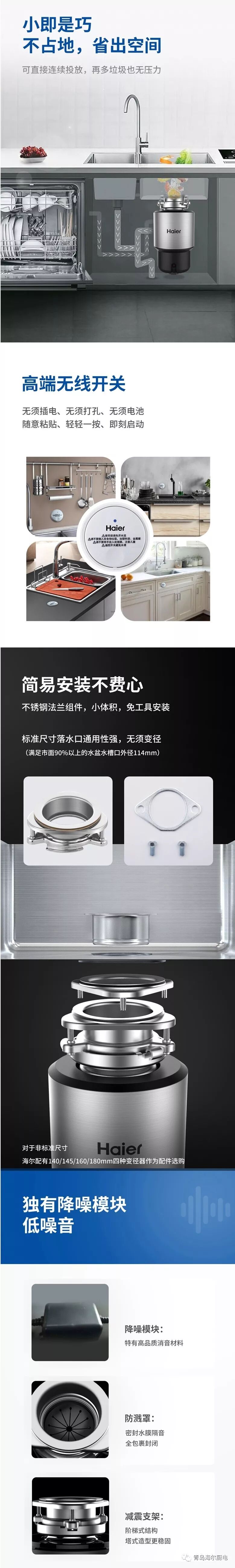 海尔垃圾处理器考虑了“精细研磨”,“低噪音”,“小尺寸大容量”和“维修时间长”四个方面. 海尔的研发工程师介绍说,其技术和质量体系来自通用家用电器. 它升级了仿生锤磨机,以提供四个级别的磨削: 锤子,切割,撕裂和磨削. 2.0%的研磨细度超过了国家标准的71%. 难以磨碎的植物纤维,例如玉米芯,也可以轻松解决. 它还配备了永磁直流电动机. 基于强大的动力,它重量更轻,振动更少,带来更安静的使用效果. Haier的厨房垃圾处理器的高度比市场上的产品小60mm,但具有1300ml的较大研磨能力. 在节省空间的同时海尔垃圾处理器加盟,可以将垃圾多次放入后顺畅地排出. 更重要的是,行业内废物处理器的保修期通常为1年,但海尔是行业内首个8年免费保修,从而消除了用户的后顾之忧.