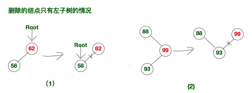 (2)、删除的节点只有左子树的情况