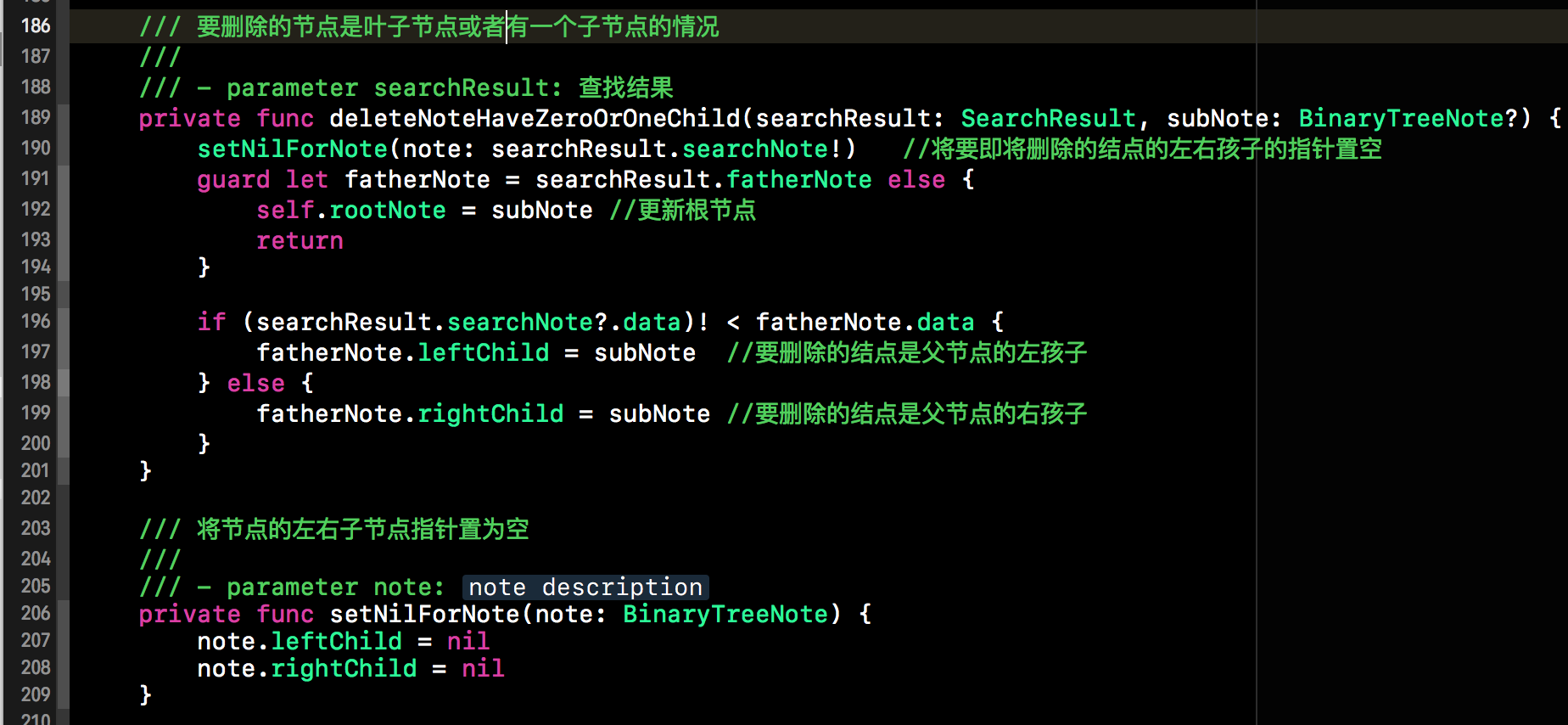 首先调用setNilForNote()方法将该将要删除的结点的子节点指针置空