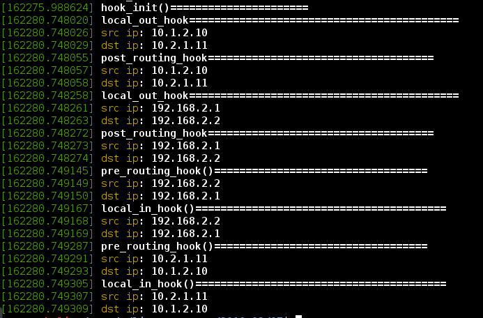 同理host2的icmp应答进入本机也是2个IP都经过了pre_routing_hook和local_in_hook。
