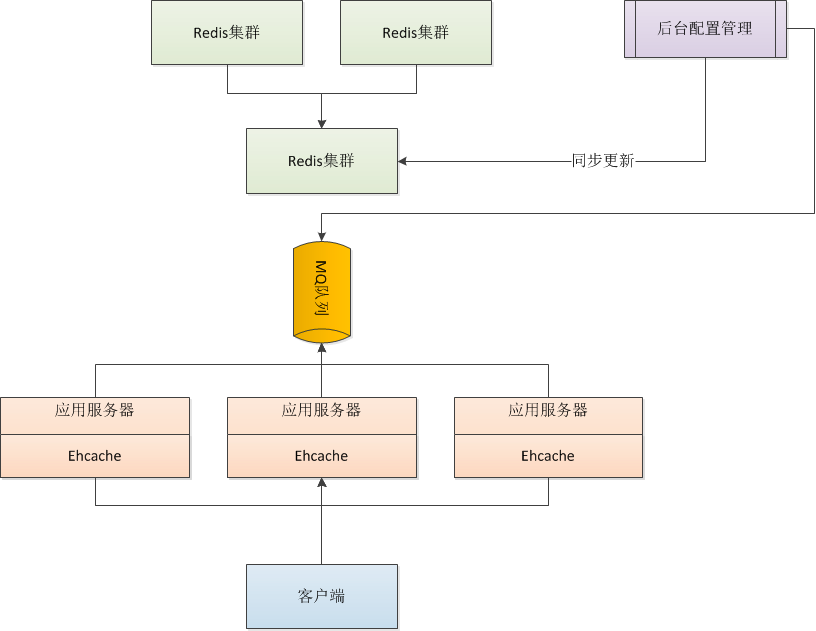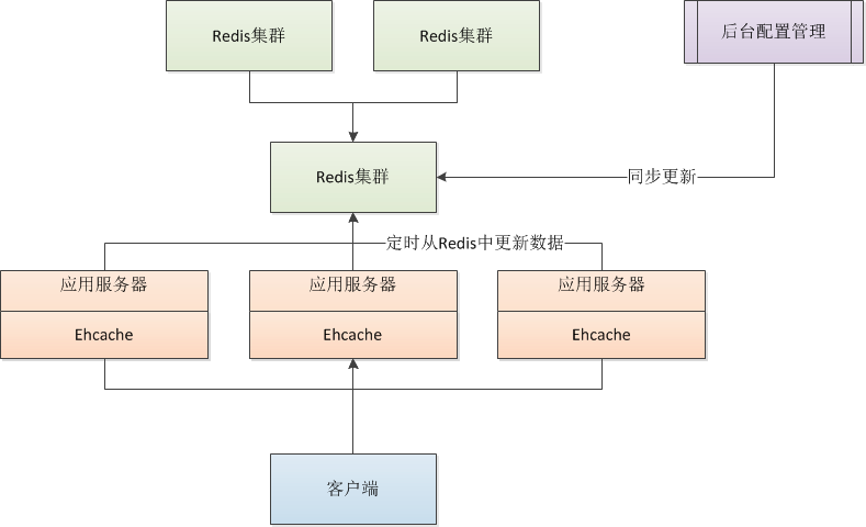 这种方式通过应用服务器的Ehcache定时轮询Redis缓存服务器更同步更新本地缓存,缺点是因为每台服务器定时Ehcache的时间不一样,那么不同服务器刷新最新缓存的时间也不一样,会产生数据不一致问题,对一致性要求不高可以使用。
