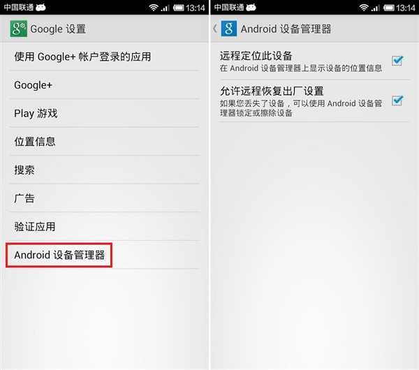 在Google服务应用中,找到“ Google设置”应用,然后在其中选择“ Android设备管理器”,然后选择“远程定位此设备”和“允许远程恢复出厂设置”.
