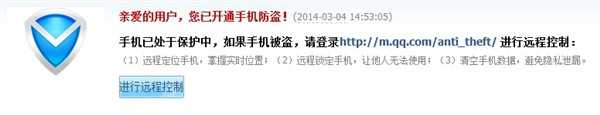 该软件将要求用户关联QQ号. 第一步是填写您的QQ号码和密码,然后您的QQ邮箱将收到系统电子邮件,并在电话界面上弹出提示,提示用户启用卸载保护功能,该功能可以防止小偷轻松卸载. 电话管家.