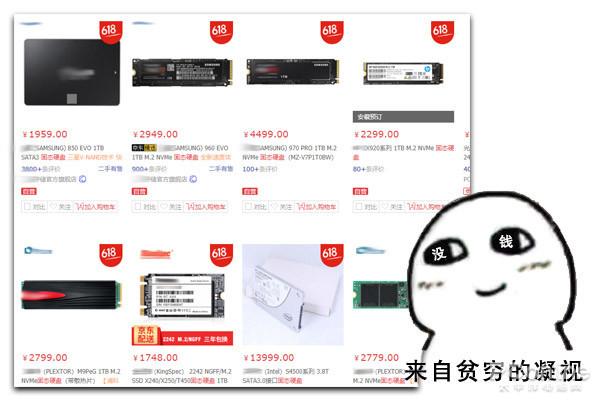大型机上的500G固态硬盘已被拉长. 我想利用京东618的固态硬盘价格下降的优势. 我想提一个1TB,但是18天来,1TB的价格仍然在2000元左右浮动,甚至一秒钟的价格也相去甚远. 我无法达到预算的最低要求.
