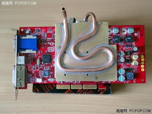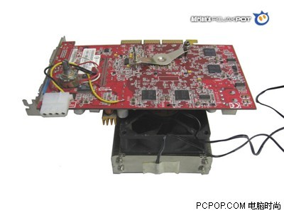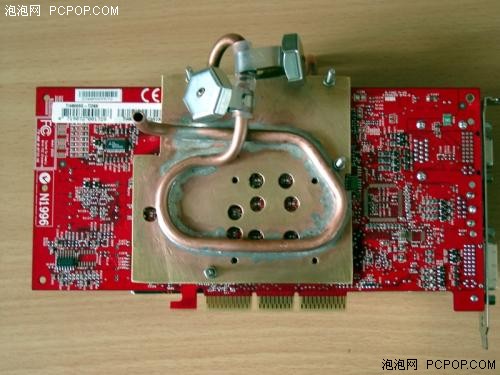现在就准备让他工作在经典的9800Pro显卡上面,把9800Pro的原配散热器拆下来,菱形的散热片正好用来固定SI-97,事实上如果没有这个菱形散热器,要另外找一个固定装置还真比较困难。散热