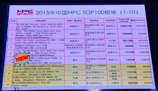 中科曙光荣膺2015中国高性能计算TOP100份额第一