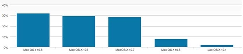 2009年发布的OS X 10.6雪豹系统仍然是使用最广泛的Mac系统,在去年12月31日,雪豹占有Mac互联网流量的29%。目前雪豹系统在苹果商店中仍然出售,而稳定性好,升级方便,价格不贵都是推动苹果用户迅速更新系统的原因。山狮系统山狮系统据统计,OS X 10.7 Lion发布的第一天,就有100万人购买和下载,而今天的Mountain Lion的升级速度也不慢。
