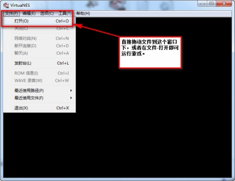 先点击VirtuaNES.exe运行,再点击文件->打开,选择模拟器的运行镜像,就可以运行游戏了;您也可以直接拖动镜像文件到这个窗口中,也可以运行游戏。