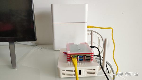 现在连接网络电缆,将Raspberry Pi的唯一网络端口(设置为lan)连接到主路由的LAN,主路由的WAN仍连接到光猫