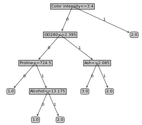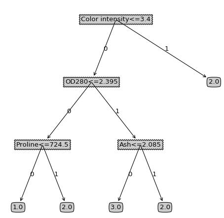 4.1试证明对于不含冲突数据(即特征向量完全相同但标记不同)的训练集,必存在与训练集一致(即训练误差为0)的决策树答:假设不存在与训练集一致的决策树,那么训练集训练得到的决策树至少有一个节点上存在无法划分的多个数据(若节点上没有冲突数据,那么总是能够将数据分开的)。这与前提-不含冲突数据 矛盾,因此必存在与训练集一致的决策树4.2试析使用“最小训练误差”作为决策树划分选择的缺陷。答:若以最小训练误差作为决策树划分的依据,由于训练集和真是情况总是会存在一定偏差,这使得这样得到的决策树会存在过拟合的情况,对于未知的数据的泛化能力较差。因此最小训练误差不适合用来作为决策树划分的依据。4.3试编程实现基于信息熵进行划分选择的决策树算法,并为表4.3中数据生成一棵决策树答:基于信息熵进行划分选择的决策树算法即ID3决策树,代码见我的另外一篇博文:ID3决策树的Python实现